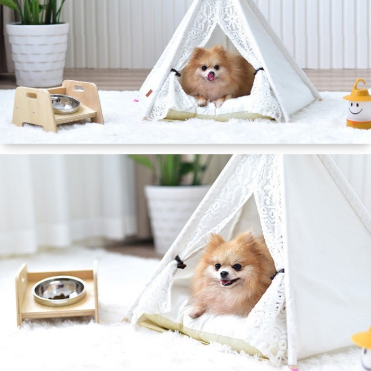 Removable and Washable Canvas Fabric Pet Nest Pet Tent, Size:40x40x50 cm, Style:Spiked Lace (without Pad)